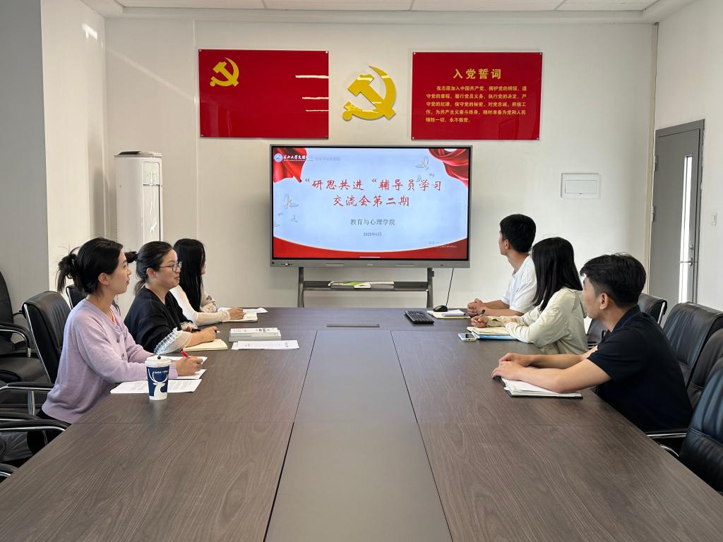 (通讯员 图文/梅曼曼)为进一步增强辅导员队伍的政治素养,提高学院辅导员队伍的工作能力,5月9日,我院学工队伍召开“研思共进”辅导员学习交流会第二期,教育与心理学院党总支书记祝峰,副书记梅曼曼及全体辅导员参会。