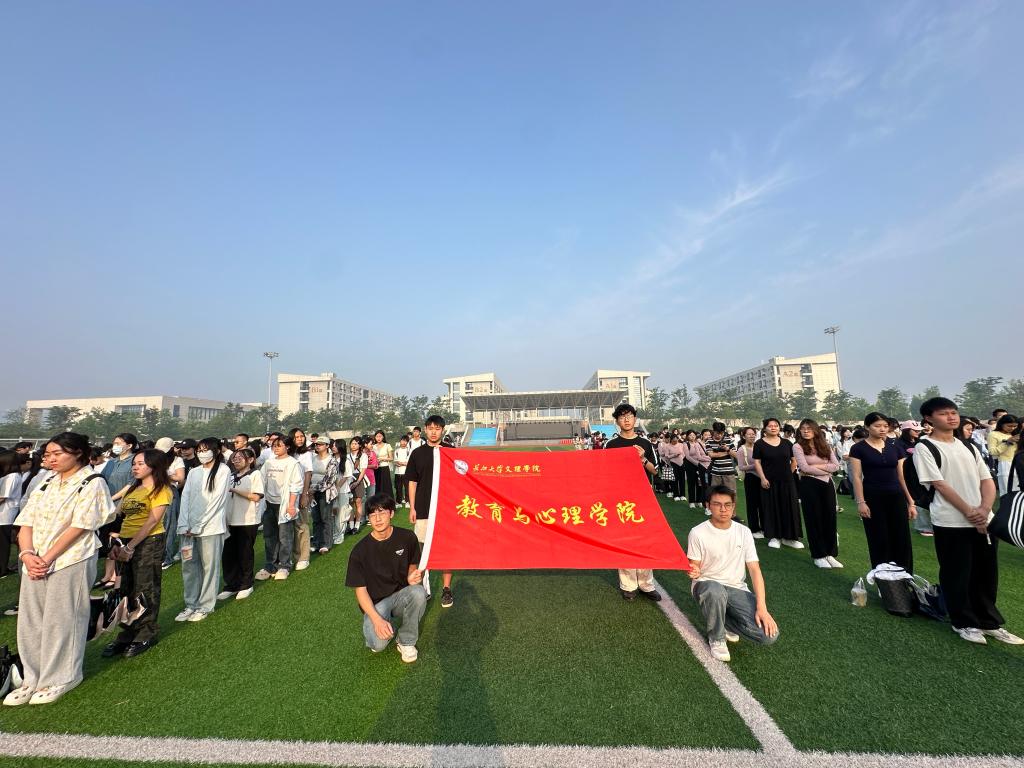 (通讯员 图/文 游安源)2025年5月19 日早上7:00,教育与心理学院在学校田径场开展了2025年夏季学期 “心健康,向未来”主题升旗仪式。我院全体教职工及学生参与了此次升旗仪式,仪式由小教5242班罗飞扬同学主持。