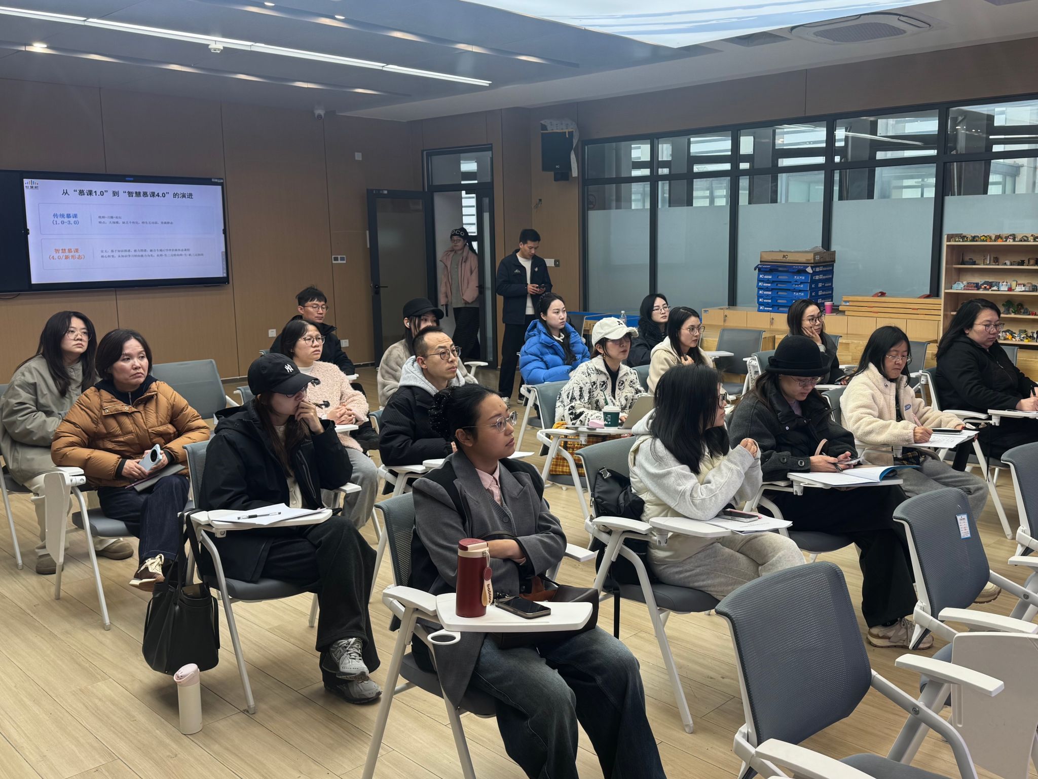 培训围绕四个核心内容展开。第一部分,主讲人系统介绍了什么是智慧慕课,明确这是本次学校立项要建设的课程类型,并对相关标准进行了解读。第二部分重点分析了为什么要建智慧慕课,从国家政策导向和下一轮教学评审趋势两个维度,阐述了智慧课程建设的重要性和必要性。第三部分聚焦怎么建智慧慕课,详细介绍了将如何协助教师从课程设计、技术实现到资源整合的全流程建设。第四部分讲解了怎么用智慧慕课,重点探讨教师如何创新教学方法、学生如何借助平台开展个性化学习。