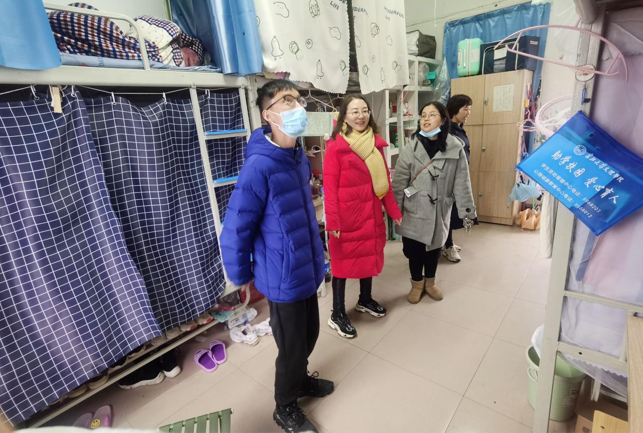 (通讯员 杨琪)2月26日下午,为做好系部学生安全返校工作,为学生返校后提供良好的住宿保障。教育与心理系徐霄主任、李刚英书记一行到学生宿舍进行检查,实地查看学生宿舍热水、电等是否正常供应,并与宿管沟通宿舍消杀情况。及时对存在问题和安全隐患的学生宿舍进行排查,保障学生返校能有舒适,安全的环境。