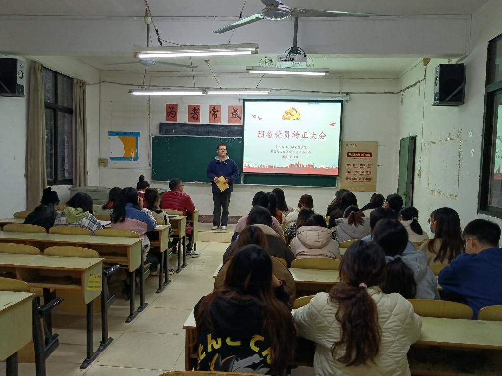 本网讯(学生通讯员 郑华夏)昨天(11月29日)下午,我系学生党支部召开了预备党员转正大会。覃儒卿、李晓怡、杨琪等相关入党介绍人和支部全体党员参会,会议由我系党支部书记梅曼曼主持。