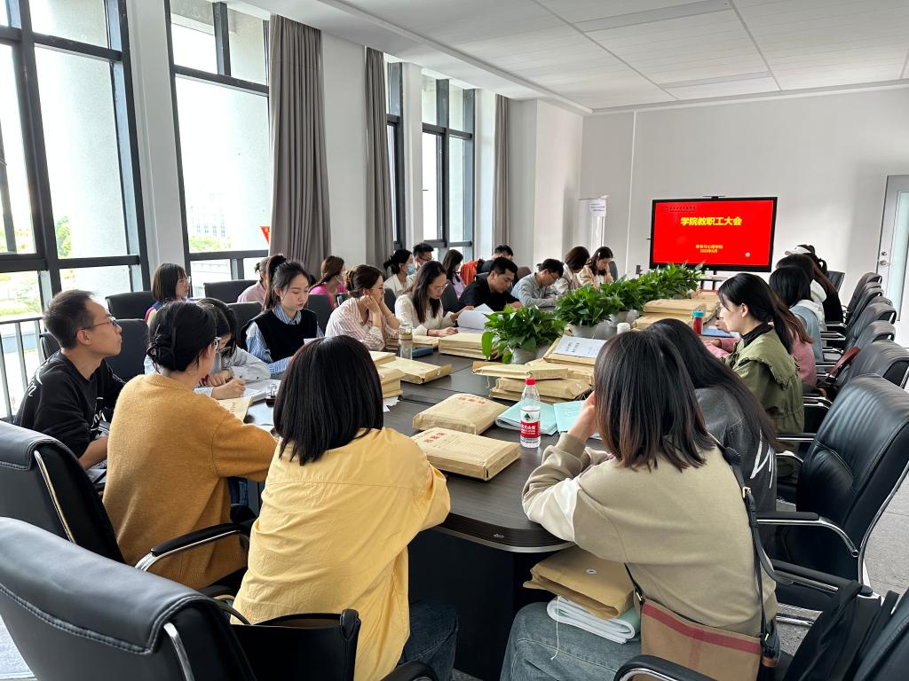 本网讯(通讯员 刘娅)5月11日,我院在教学楼JY304会议室召开5月教职工大会。会议由教育与心理学院院长徐霄主持,全体教职工参会。