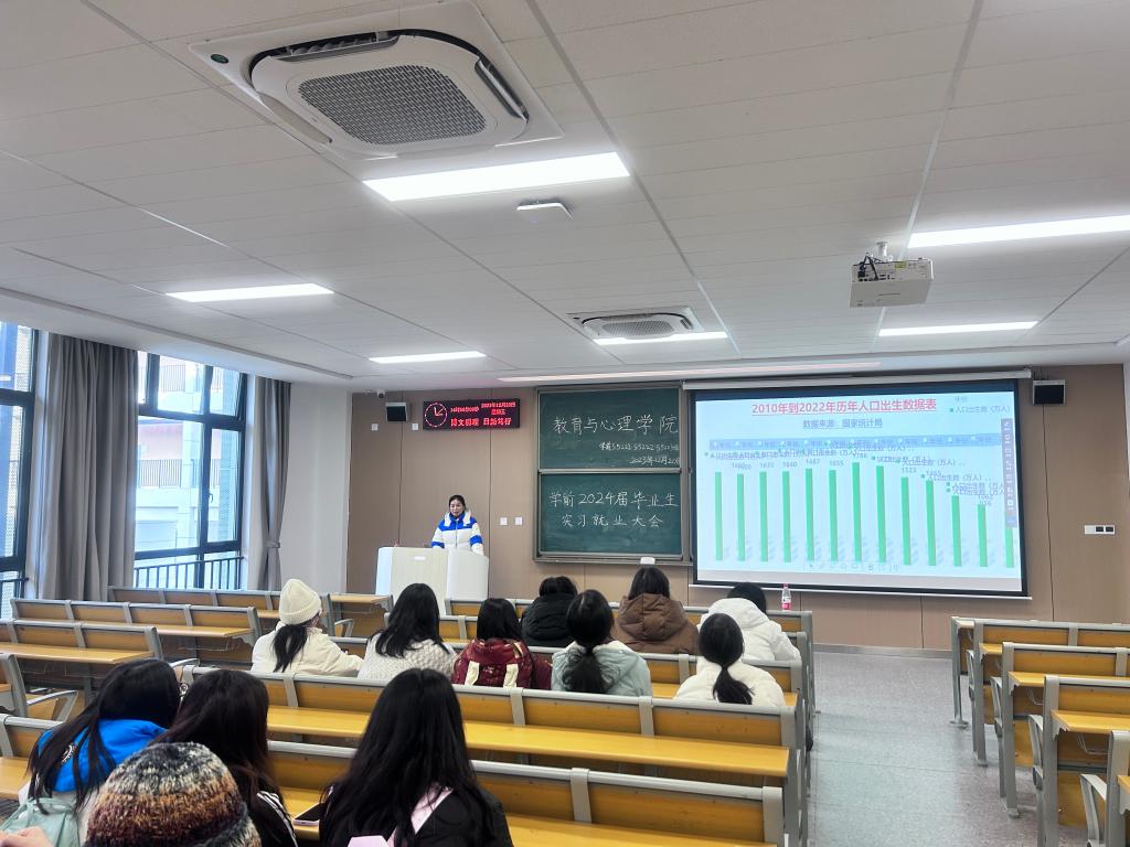 本网讯(通讯员 向坤)为了更好地推进实习就业一体化进程,促进毕业生顺利毕业。12月20日下午,我院召开2024届学前教育专业毕业生实习就业大会,东莞市启达教育投资集团总经理姚凤琴、我院党总支副书记梅曼曼、学前教育专业教师肖雅筠、鲁婷及2024届学前教育专业毕业生参加,会议由辅导员王帅主持。
