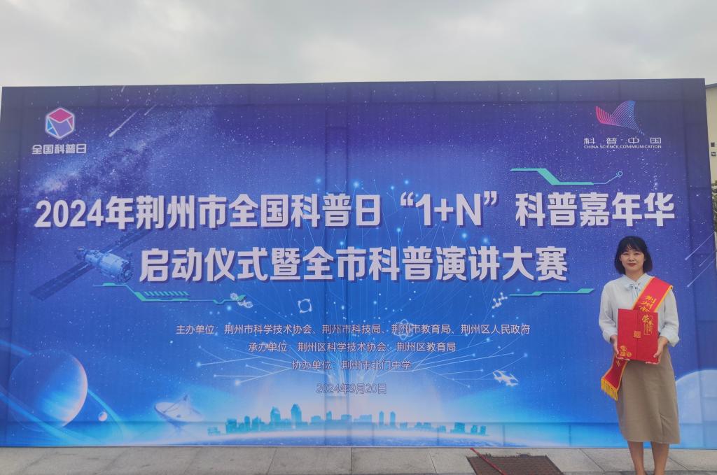 近日,在2024年荆州市全国科普日“1+N”科普嘉年华启动仪式上,我校管理学院胡沿林老师被授予“荆州市十佳科普工作者”称号。