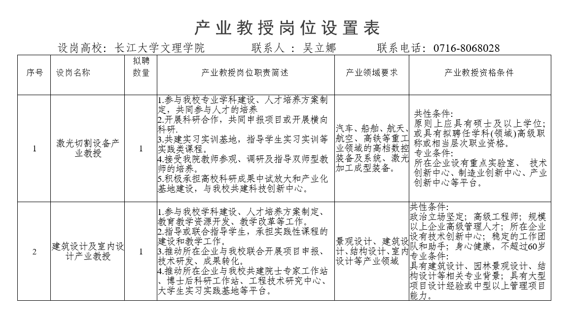 中共湖北省委人才工作领导小组办公室、湖北省教育厅正联合开展2024年“湖北省产业教授“选聘工作,全省高校选聘总量60名左右。经各学院申请,我校拟面向社会公开选聘产业教授2人,岗位及要求见下表。