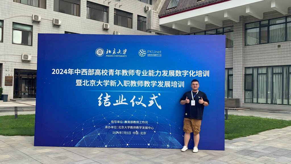 7月5日,2024年中西部高校青年教师专业能力发展数字化培训暨北京大学新入职教师教学发展培训结业仪式在北京大学举行。我校管理学院青年教师戈绍银因培训成绩突出,受邀参会,共同铭记这一意义非凡的时刻。