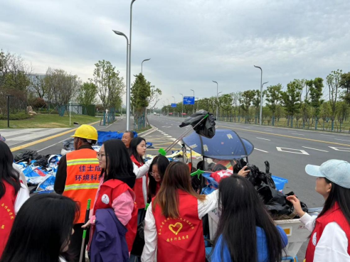 比赛当天,志愿者们早早地聚集在中央公园门口,携带了各种清扫工具,包括扫帚、垃圾袋、夹子等。志愿者们合理分配任务,分别清扫路面垃圾和分发宣传单,在赛程接近尾声时,志愿者们快速地捡起路边的各种垃圾,协助工作人员完成赛事收尾工作。