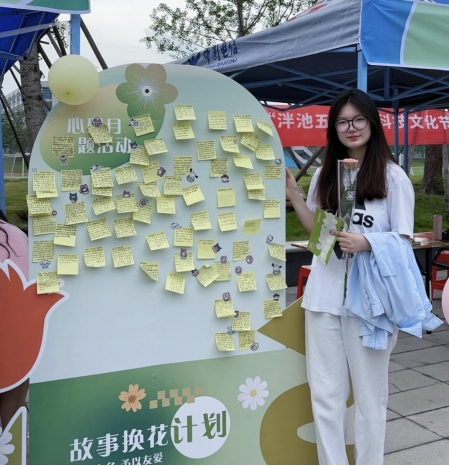 活动现场,娇艳的花束与承载温情的便签纸成为连接心灵的纽带。同学们纷纷写下珍藏的温暖记忆——或是亲人无微不至的关怀,或是友人携手相伴的瞬间,字里行间流淌着真挚情感。同学们以故事兑换花材,亲手制作专属花束,在修剪、搭配花枝的过程中,让花香与墨香交织成治愈的力量。捧在手心的不仅是精美的花束,更是对生活的热爱与积极向前的勇气。