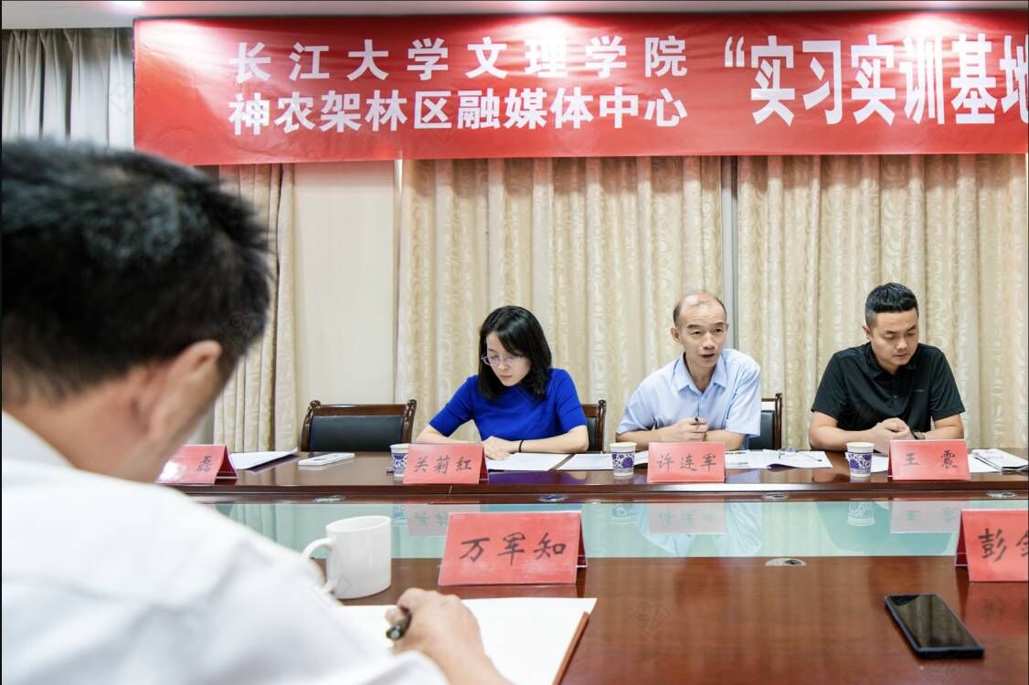 本网讯(记者 筱梦 通讯员 王磊)8月13日,我校人文与传媒学院院长许连军教授率队赴神农架开展实习基地共建交流活动。在林区融媒体中心,双方代表签订了“实习基地共建协议书”,并共同为“yl7703永利集团实习实训基地”揭牌。神农架林区融媒体中心副主任彭剑利等出席活动。