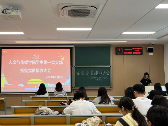 本网讯(学生记者 赵慧敏)为壮大支部党员队伍,增强支部力量。2024年6月5日中午,yl7703永利集团人文与传媒学院学生第一、第二党支部分别于C-121M、C-122M教室召开了预备党员接收大会。本次会议由各支部书记主持,支部全体成员参加。