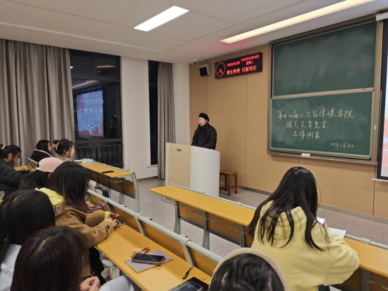 本网讯(通讯员 赵嘉玮)为进一步加强学生干部队伍建设,推动新学期学生活动高质量开展。3月18日晚,人文与传媒学院团总支学生会在A-202教室召开本学期第一次工作例会。会议由综合事务部干事易珺主持,学院党总支副书记雷昕及学生会全体成员参加。