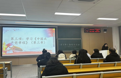 活动中,全体党员集中学习了国家主席习近平发表的二〇二六年新年贺词、党的二十届四中全会精神以及中央政治局民主生活会精神,深刻领会新时代新征程的使命任务与要求。会议紧扣学风建设,明确了诚信考试、学术自律的相关准则,引导党员在学术规范和考风考纪上做好表率。在庄重的氛围中,由支部书记领誓,全体党员重温入党誓词,并集体诵读了《中国共产党章程》第三章,进一步夯实了理论根基。结合典型案例开展的警示教育,提醒全体党员必须严守党的纪律规矩,做到知敬畏、存戒惧、守底线。