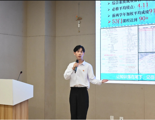 作为班级团支书,他深知求学的重要性,2024-2025学年专业平均绩点4.4,连续3年专业成绩和综测成绩都稳居专业第一,并获得学院特等奖学金和一等奖学金。他乐于助人,积极与老师沟通,成为同学间的桥梁,荣获”优秀团员标兵”“优秀团干部”等荣誉称号。