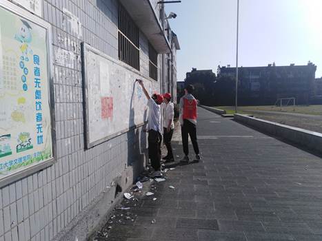 活动前,志愿者对需要清理的场地进行明确的分工,同时对细节问题进行了详细的讨论说明。随后,清理行动在下午两点正式开始。此次志愿服务活动覆盖了一教、校内公告栏以及学生公共活动区域。清理过程中,志愿者们积极踊跃,充分发挥不怕脏、不怕累的精神,展现了青年志愿者的良好风貌。