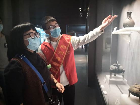 志愿者在荆州市博物馆各类展厅中为游客介绍馆内荆楚文物,从古老的青铜器到温润的玉石,同学们认真地为游客讲解文物的历史。游客也在他们的讲解下,对馆内文物有了进一步的了解与认识。同学们的认真讲解,受到游客以及馆内工作人员的认可。志愿者们纷纷表示能够参与这次志愿活动非常开心,在锻炼自己的同时还能够帮助到他人,这是非常有意义的。