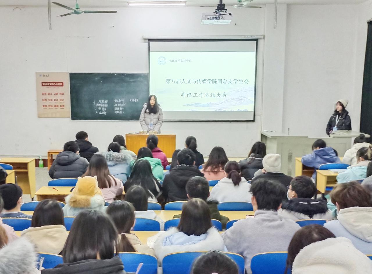 本网讯(学生记者 王丹)12月13日晚,人文与传媒学院第八届团总支学生会年终总结大会在1教114举行。党总支副书记张曦、第八届团总支学生会全体成员参加本次会议,会议由综合事务部叶子雨主持。
