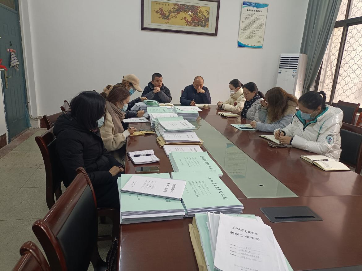 本网讯(通讯员 陈晨)2022年1月7日上午,人文与传媒学院在会议室召开了中文教研室教学工作会,本次会议由人文与传媒学院副院长关莉红主持,院长罗勋章、学院党总支书记刘磊以及中文教研室全体专任教师参加。