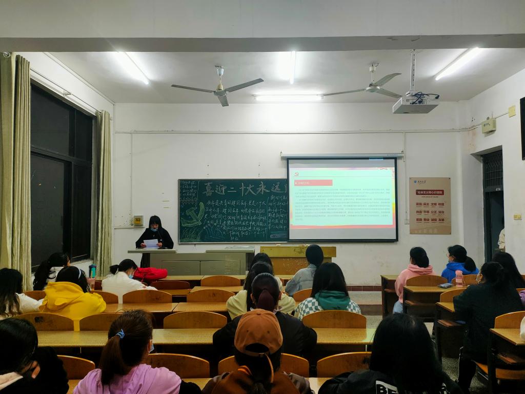 本网讯(学生记者 田燕) 4月14日晚,人文与传媒学院各班开展“喜迎二十大、永远跟党走、奋进新征程”主题团课。本次团课旨在带领同学们学习党史以及党领导团员青年的奋斗史,让同学们永远坚定跟党走。