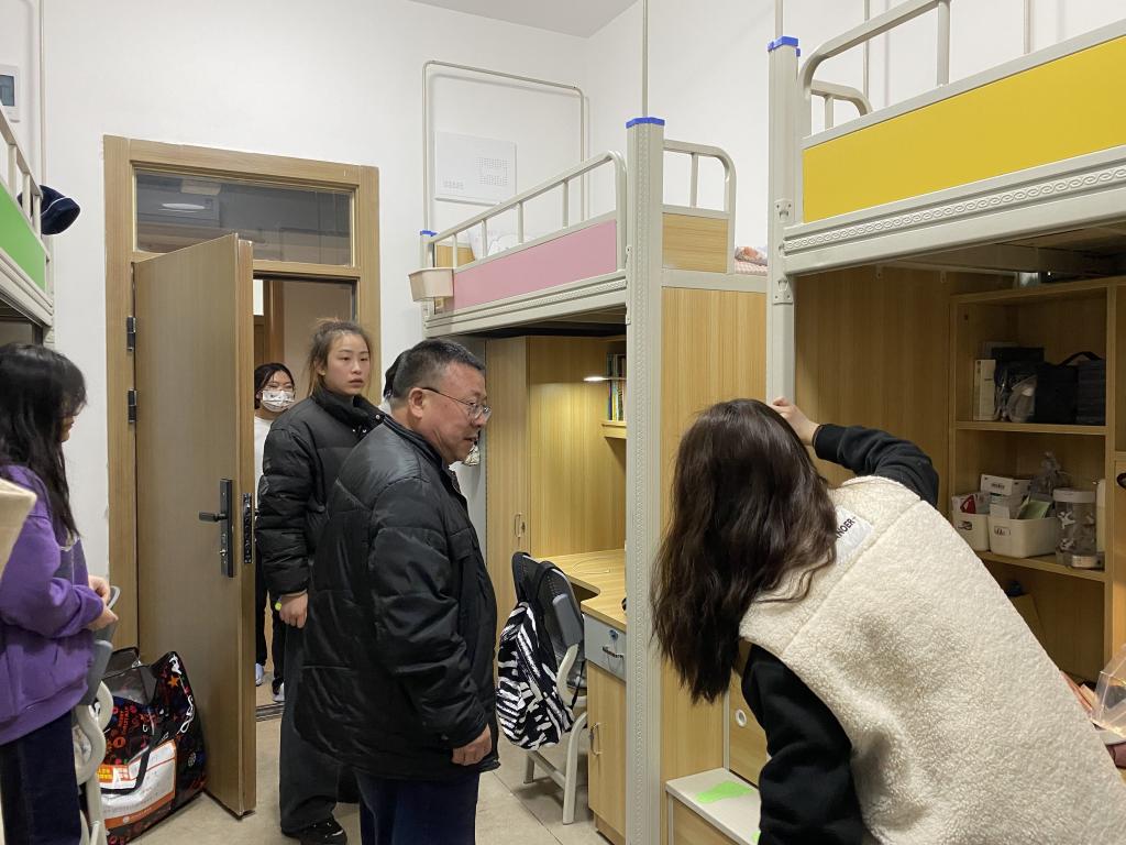 本次查寝活动是为了走进学生的生活,老师们叮嘱了同学们用电安全,提醒同学们注意室内整洁,通风,处理好寝室关系,妥善保管好自己的个人物品等。并且强调每个同学都要注重个人卫生,才能构建美好而干净的寝室环境。,同时亲切地询问同学们对新校区宿舍的看法。