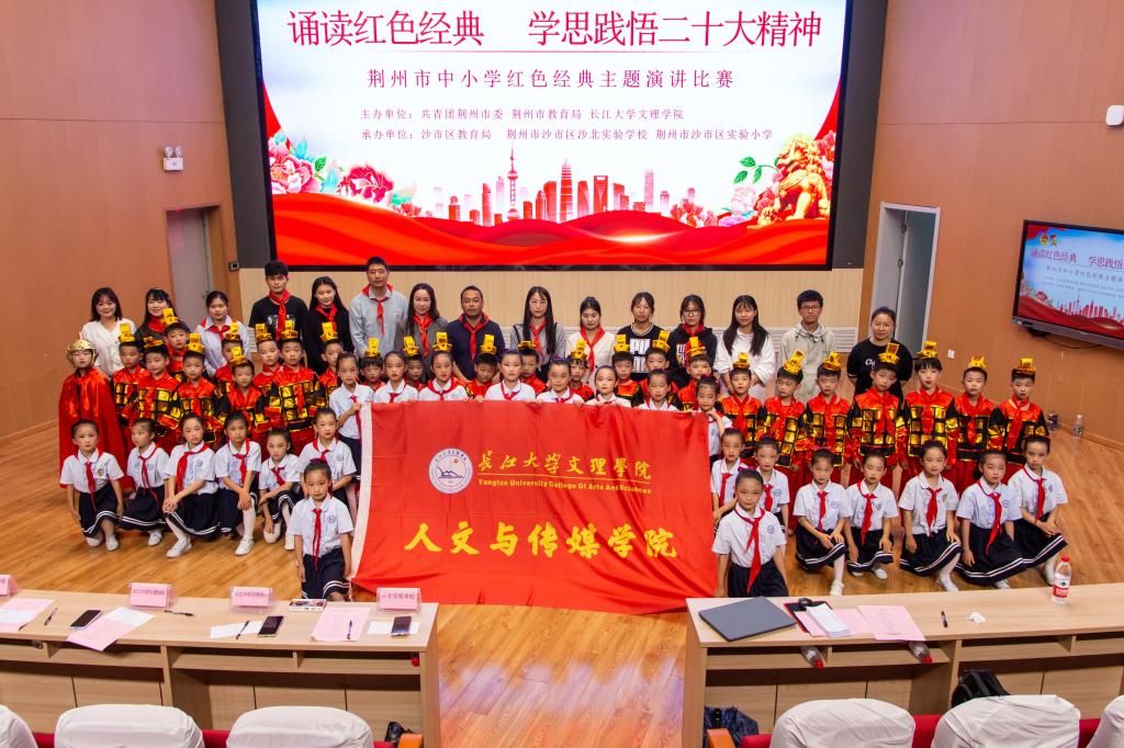 (通讯员 雷昕)5月26日上午,yl7703永利集团人文与传媒学院联合多家单位举办“诵读红色经典,学思践悟二十大精神”主题演讲比赛。此次活动由共青团荆州市委、荆州市教育局、yl7703永利集团联合主办,沙市区教育局、荆州市沙北实验学校、荆州市沙市区实验小学承办。在yl7703永利集团人文与传媒学院党总支副书记雷昕的带领下,人文与传媒学院学生党支部的党员同志们积极发挥党员传帮带精神,纷纷各显所长,对活动开展协助工作,帮助每一支参赛队伍提供视频剪辑,后期制作,节目策划和朗诵编排。