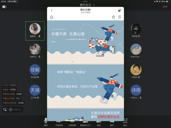 本网讯(通讯员 梁玥)为推动人文与传媒学院2024届就业工作的顺利开展,切实促进毕业生高质量充分就业。3月5日晚,学院使用腾讯会议召开2024届毕业生就业动员会,高年级辅导员、班主任主持各班会议,全体毕业生参会。