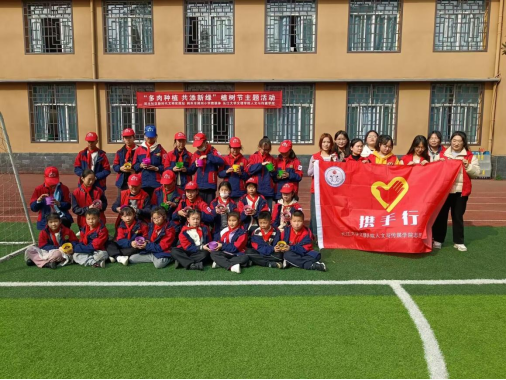 本网讯(通讯员 刘钰)播种绿色希望,共享未来蓝天。在学雷锋月之际,为弘扬雷锋精神,提高小学生们的爱绿护绿的意识。3月12日下午,人文与传媒学院联合民主社区荆州小学,开展了以“植此青绿,拥抱春天”为主题的植树节志愿服务活动。
