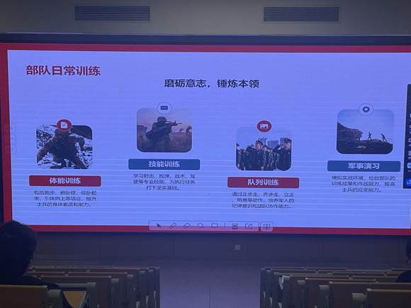 “穿上军装是我一直以来的梦想,军营不仅能锻炼意志,更能为国家贡献自己的青春力量。此次征兵宣讲邀请到老兵团退役大学生士兵利用演讲的形式扩大宣传覆盖面,让征兵信息触达每一位有参军意愿的学生,鼓励更多大学生以青春之我、奋斗之我,投身国防建设,在军营中锤炼品格、增长才干,书写无愧于时代、无愧于人民的青春华章。