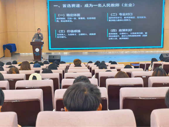 讲座中,姜威老师从一线教师的视角出发,围绕“师范生职业规划”与“招考面试技巧”两大核心内容展开讲解。