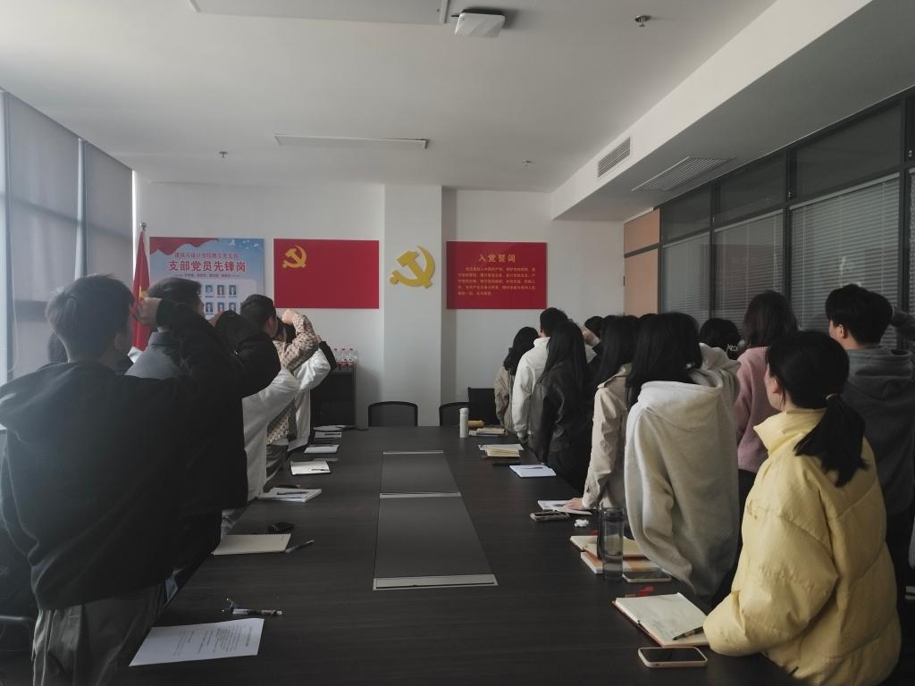本网讯(记者张程惠),建筑与设计学院学生党支部与3月21日在图书馆三楼会议室召开3月主题党日活动。本次活动一共有六项议程,第一项重温入党誓词,第二项党员交纳党费,第三项,学习《中国共产党章程》第二章,第四项支部书记讲话,第五项开展理论学习,第六项开展主题研讨。