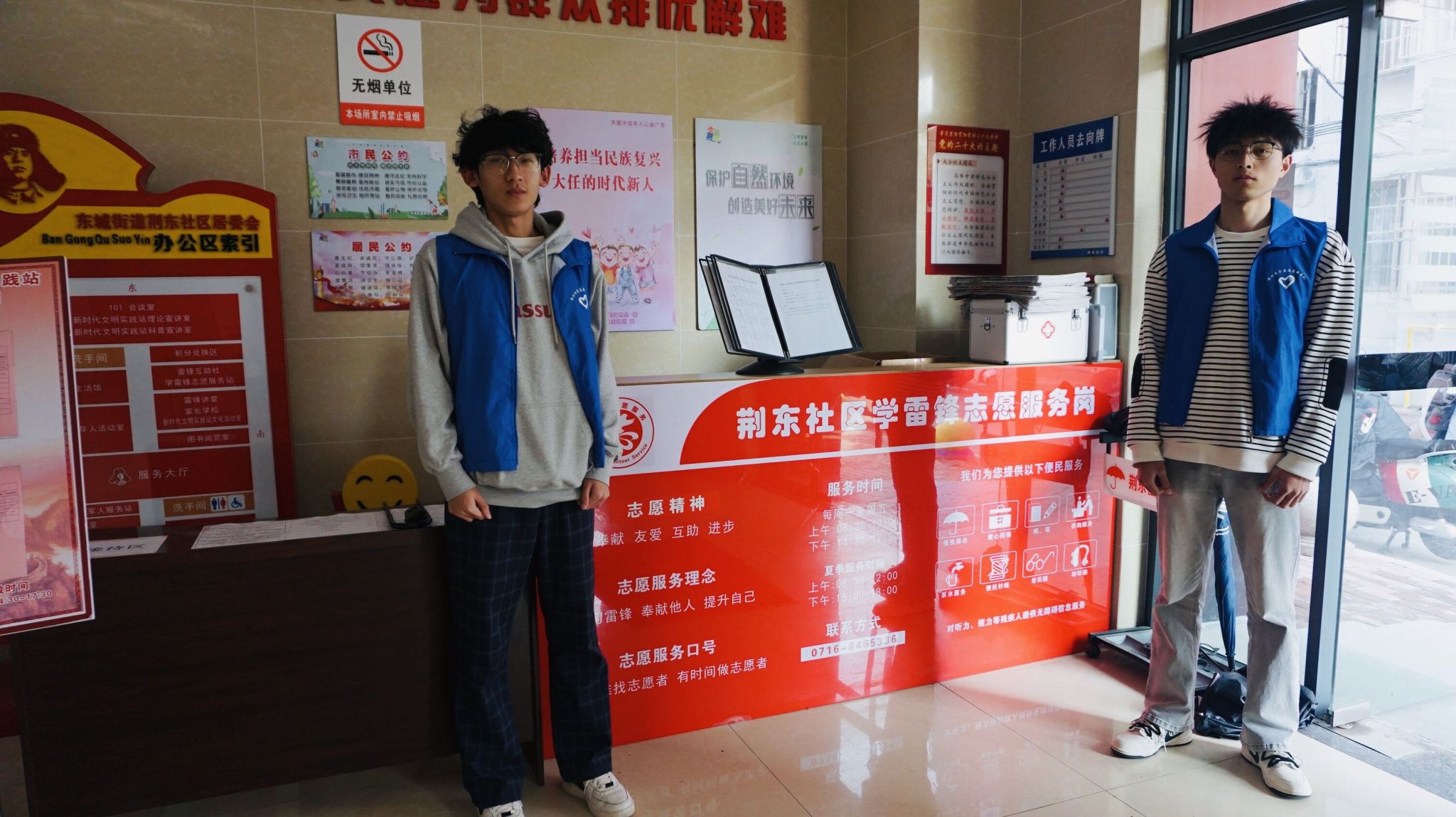 活动当天,身着蓝马甲的志愿者们准时在荆东社区新时代文明实践站集合完毕。这支由建筑与设计学院学子组成的服务队,迅速兵分多路投入志愿服务。在社区环境美化行动中,志愿者们手持夹钳、垃圾袋,对小区主干道、绿化带内的白色垃圾与杂物进行“地毯式”清理,不放过任何一个卫生死角,用实际行动为社区按下“美颜键”。