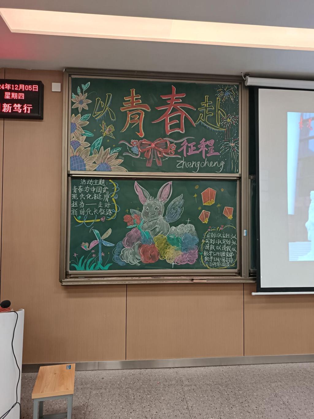 本网讯(见习记者 朱静怡)12月5日,我系各班级陆续召开以“青春为中国式现代化挺膺担当,深入学习'走好新时代长征路'”为主题的团课。全系学生踊跃参与,共同深入学习走好新时代的长征路。