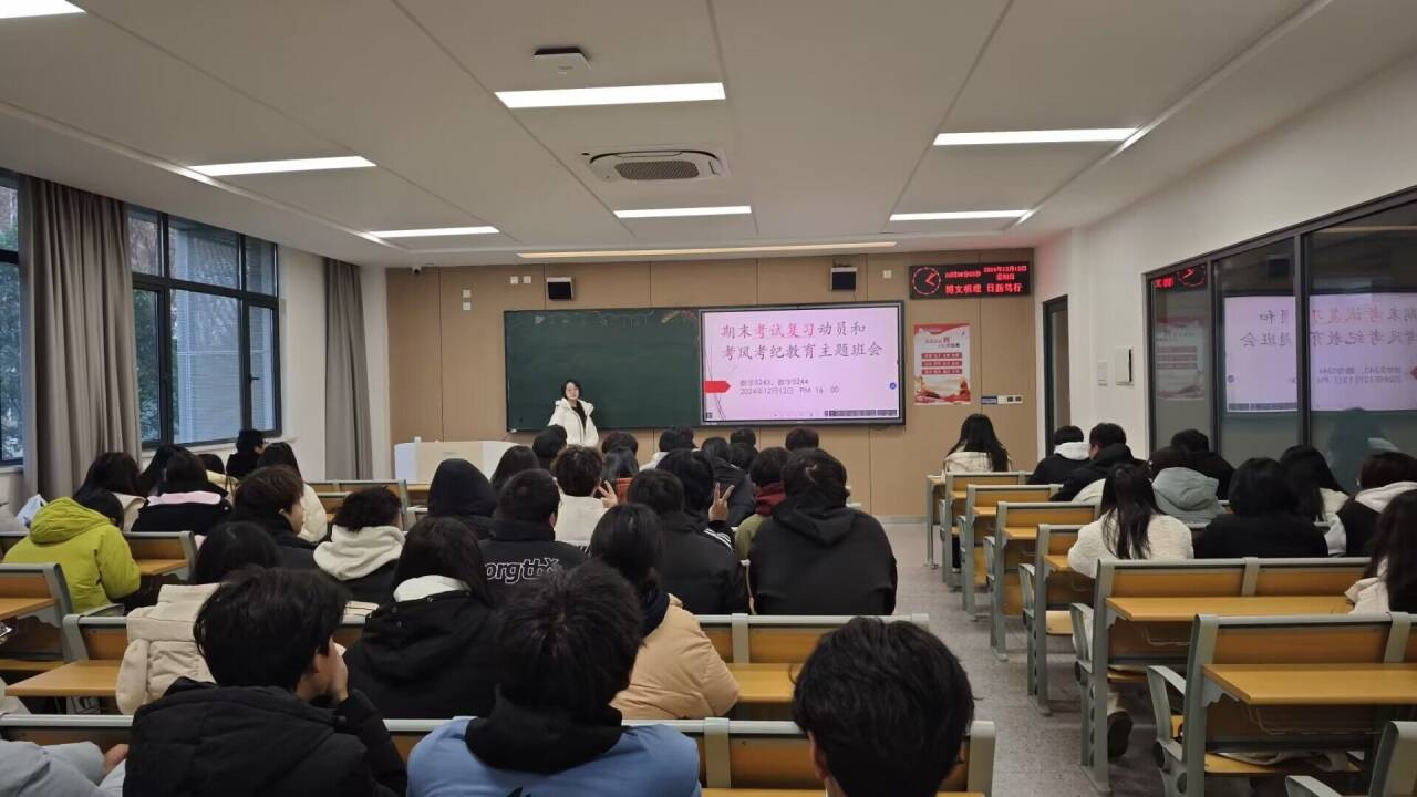 班会上,班主任围绕期末考试、四六级考试、研究生考试等系列考试的相关要点进行深入讲解。首先,班主任着重强调诚信考试的重要性,解读了学校关于考试的各项规章制度,明确讲述作弊行为的界定,警示同学们务必坚守道德与规则红线。随后,向大家分享高效复习策略与技巧,通过多元方式助力同学们夯实所学知识,强化学习成果。