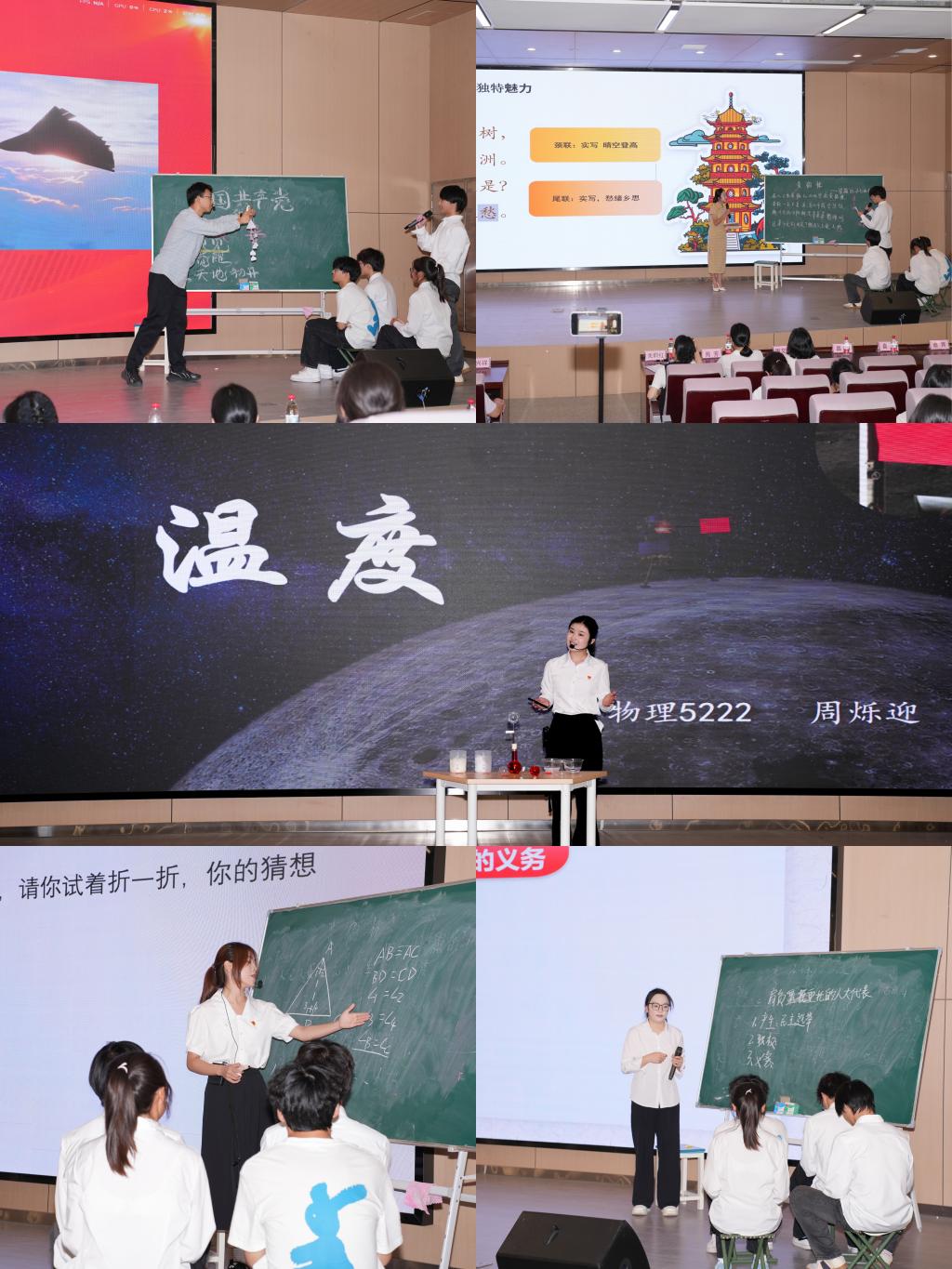 本次活动以朗诵表演《闪耀吧,青春的火光!》拉开序幕。比赛开始,十位参赛选手分别进行模拟授课和即席演讲,模拟授课中,他们通过多媒体课件、教具模型等多样化教学技巧将抽象的知识转化成通俗易懂的课堂内容,展现了良好的教学风采和课堂实施能力;即席演讲环节,选手们随机应变,以扎实的专业素质积极灵活应答。所有选手展示完成后,评委们分别从选手课堂设计、授课方式、教姿教态、板书书写等方面对选手进行综合全面的点评。经评委综合评分,周烁迎获一等奖;王长翔等3位同学获二等奖;傅华琦等3位同学获三等奖;李晓阳等3位同学获优秀奖。