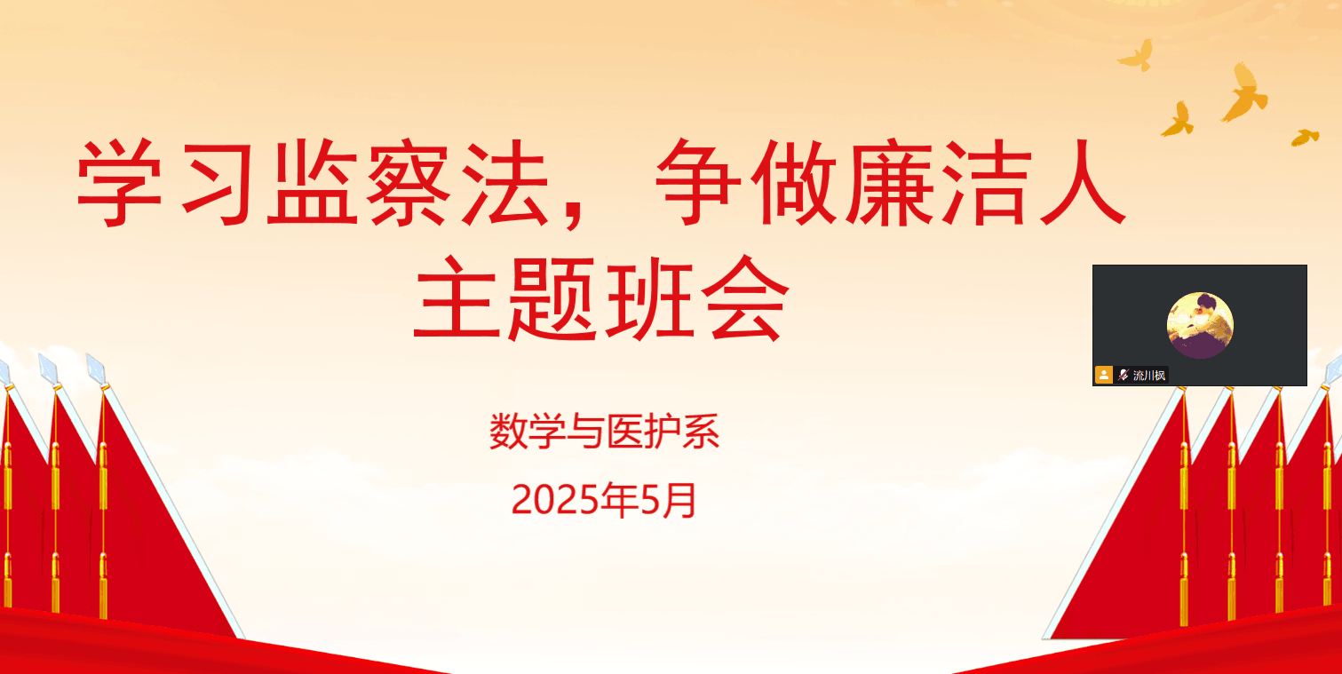 本网讯(见习记者 崔雨欣) 为营造温馨有序的离校氛围,引导毕业生以文明、感恩、积极的姿态开启人生新篇章,数学与医护系于5月28日召开线上毕业生文明离校安全教育主题班会。班会围绕遵守法律、文明离校规范、感恩教育、校园情谊传承等内容展开,为毕业生们上好离校前的“最后一课”,助力他们以昂扬姿态开启人生新征程。