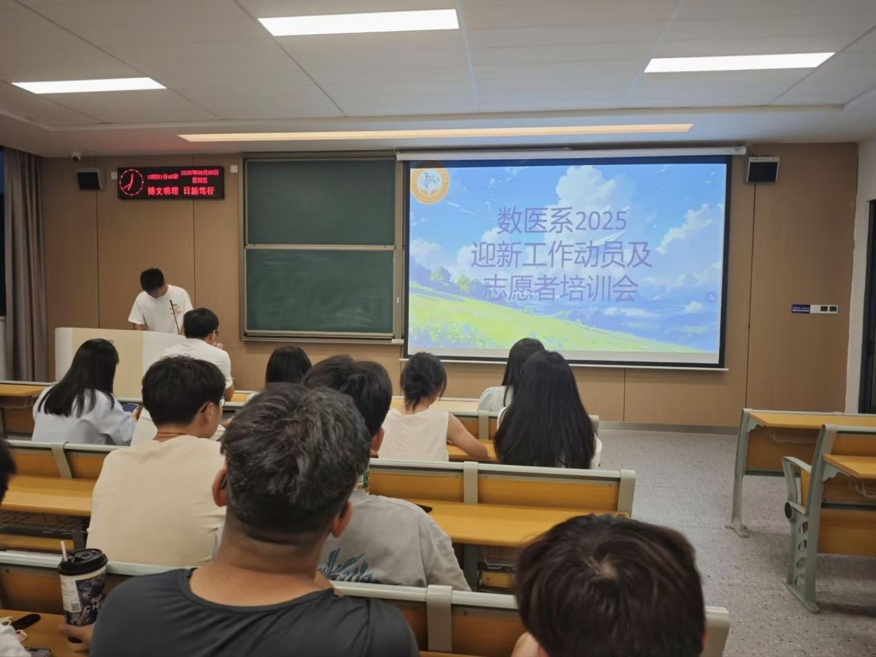 本网讯(见习记者李东霖)为确保迎新工作顺利进行,2025年9月6日19:00,我系在教学楼A-104召开2025迎新工作动员及志愿者培训会,参会人员有数医系党总支副书记燕梦蝶、辅导员聂志以及迎新志愿者们。