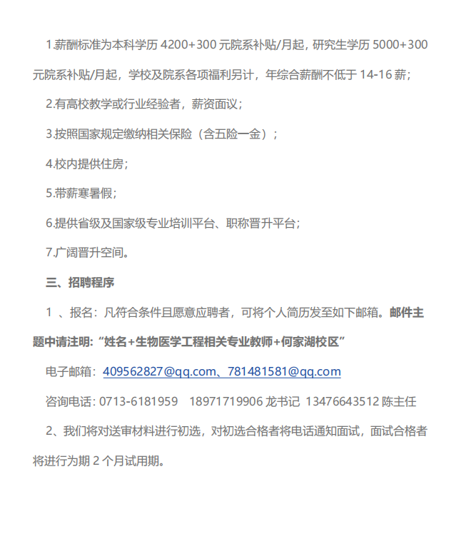 黄冈科技职业学院理工学院 2025 年生物医学工程相关专业教师招聘公告