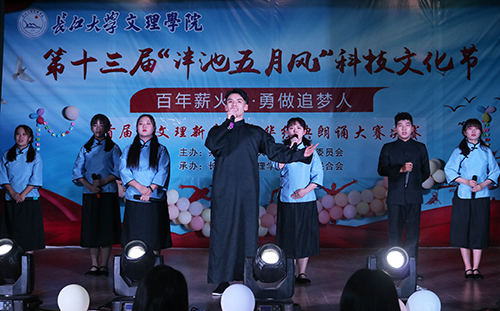 本网讯(记者 刘磊 见习记者 高璐 张诗逸 张天龙)近日,第十三届“泮池五月风”科技文化节之首届“文理新声”中华经典朗诵大赛决赛在城中校区工会礼堂落幕。副院长李琴、党委副书记孙细望出席活动,各系部两百余名师生现场观摩。