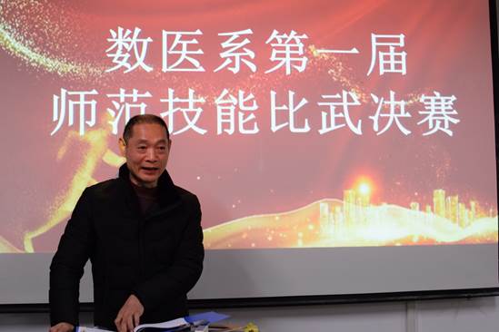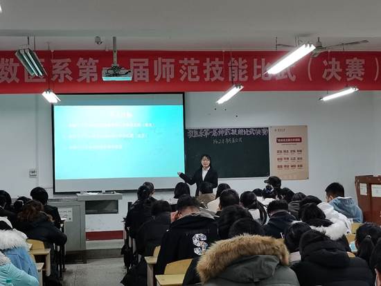 本网讯(见习记者 张楠茜 向宝蓉)12月10日18:30,我系在4教201开展“第一届师范技能比武决赛”。本次比赛旨在进一步提高我系学生的教育教学基本素质和能力,加强实践应用能力,提高教师技能培养质量,为学生搭建一个锻炼自己和展示风采的平台。担任此次比赛的评委有:数学与医护系主任史千里、数学与医护系副主任袁萍、数学与医护系班主任王春鸽、李莹莹、李茜、黄瑾。yl7703永利集团教授,硕士生导师李明武、yl7703永利集团教授李助南担任此次比赛督导。比赛由数医系团总支学生会学习部承办,学习部干事朱博文主持。
