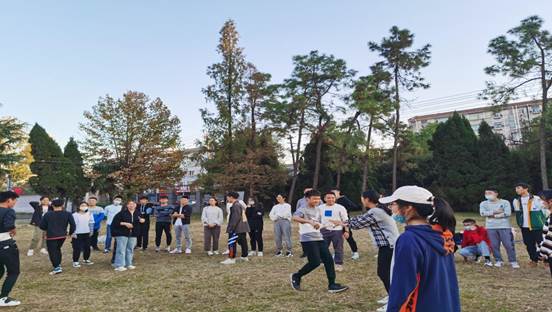 本网讯(见习记者 刘莹)11月12日下午16:00,在西校区2教前的操场,我系团总支组织开展素质拓展活动。系团总支、学生会全体成员参与,胡磊,戚翔担任本次活动的主持人。本次活动旨在增强我系学生会成员之间的信任感,培养团队合作精神。