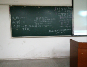 每班的宣传由三名干事配合完成,一人负责向大家讲解本次活动的内容、流程、时间、地点以及奖励,一人在黑板上留下有关活动的重要信息,另一个则负责拍照并且发报名表。此次活动每组4-6人报名参与,大一参赛者需根据英语期末成绩的及格率和平均分为评分标准,大二参赛者是根据四级考试过关率和平均分为评分标准,评分完毕后,大一大二各选出前三名送出礼品。讲解完毕后,由同学们提出不清楚的地方,进行解答,以达到宣传的效果。