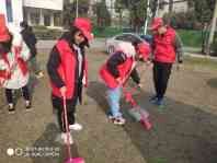 下午14:00,在清点人数,拍照留念后,由青工部向志愿者们分发工具并分配任务。志愿者服务队成员被分为三组,第一组由刘馨宇带队,第二组由郭琦带队,第三组由李志鹏带队。其中,郭琪和刘馨宇带队清扫的是二教前面的操场。李志鹏这一队清扫的是二教和三教周围的草丛。带队队长认真负责,志愿者成员们吃苦耐劳,认真打扫。大家通过一个小时的努力将二教、三教门口草坪,篮球场清扫完毕。