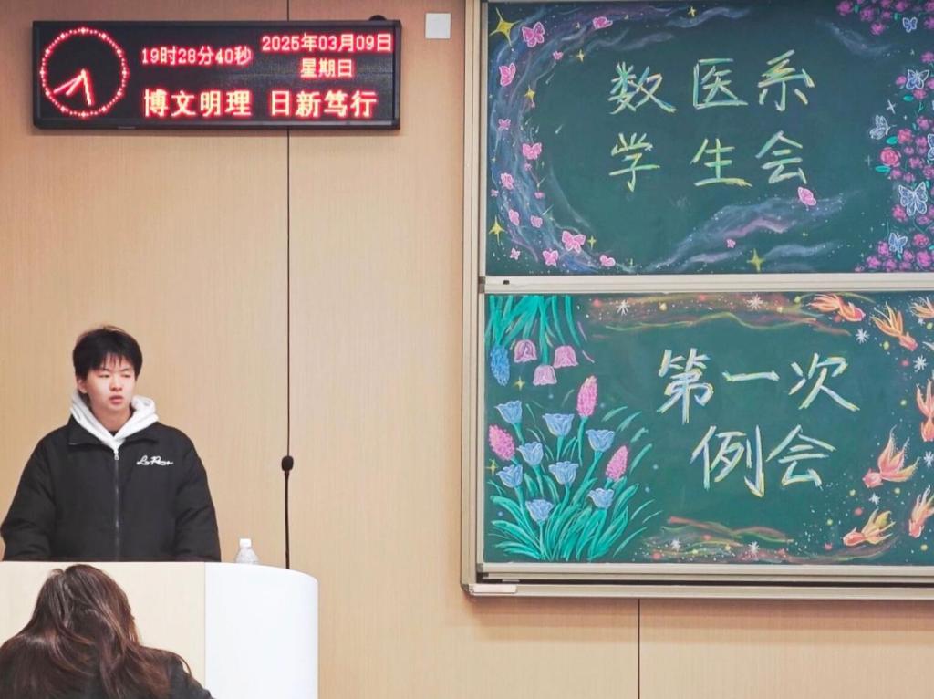 本网讯(见习记者李东霖)2025年3月9日19:00,数学与医护系第五届学生会第二学期第一次例会于A410教室顺利举行,参会人员有数医系党总支副书记燕梦蝶,学生会全体成员。
