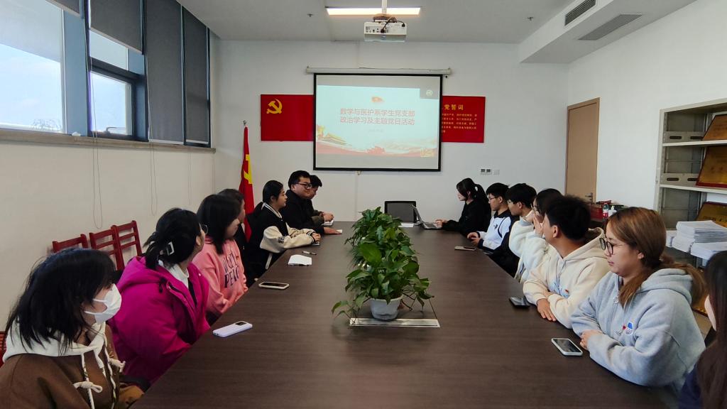本网讯(通讯员 陈灵芳)11月20日中午,数医系学生党支部在系部会议室开展11月份政治学习和“支部主题党日”活动。会议由王诗琪主持,支部全体党员参加。