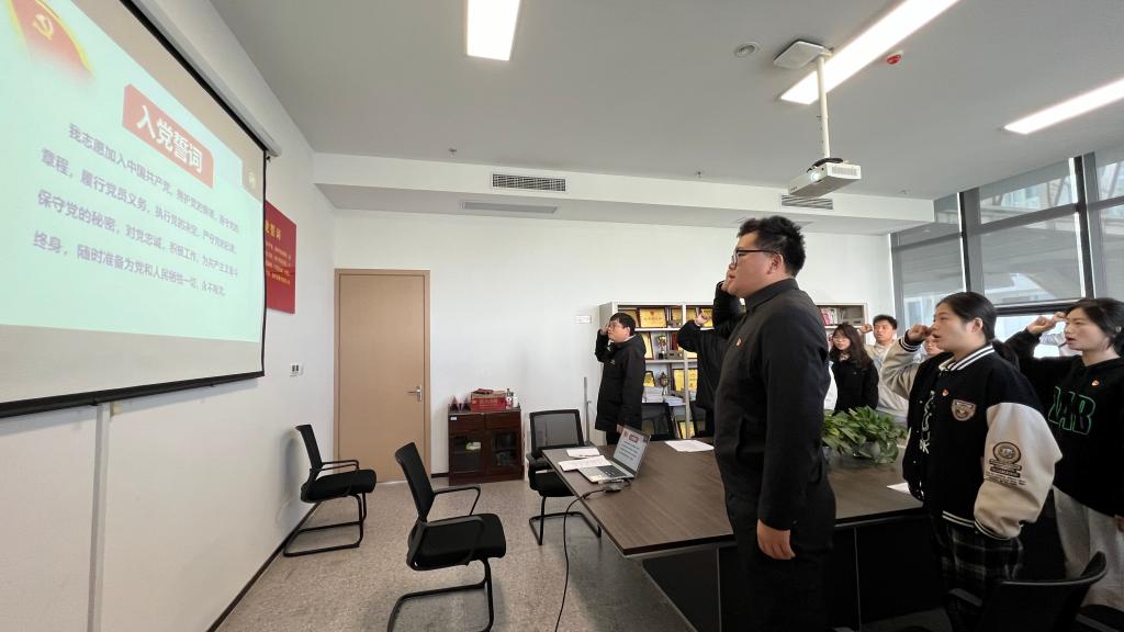 最后,全体党员重温入党誓词,进一步增强了党员的使命感和思想政治觉悟。