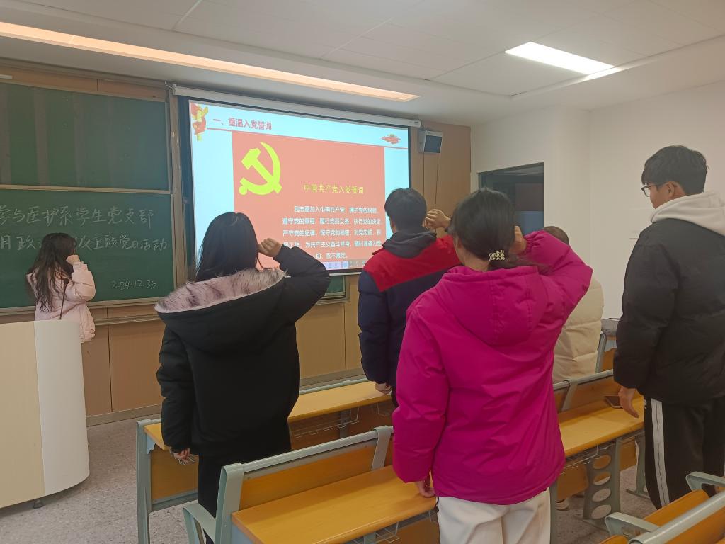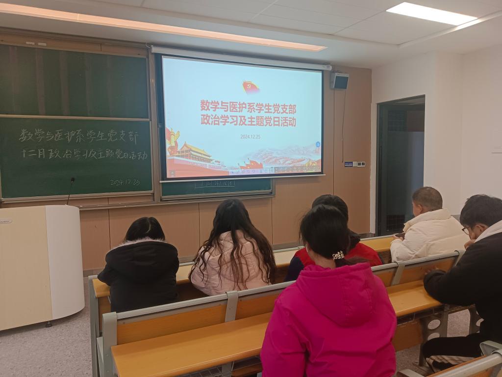 本网讯(通讯员荣梓心)12月25日中午,数医系学生党支部在C122开展12月份政治学习和“支部主题党日”活动。会议由数学与医护系团总支学生会副书记王诗琪主持,支部全体党员参加。