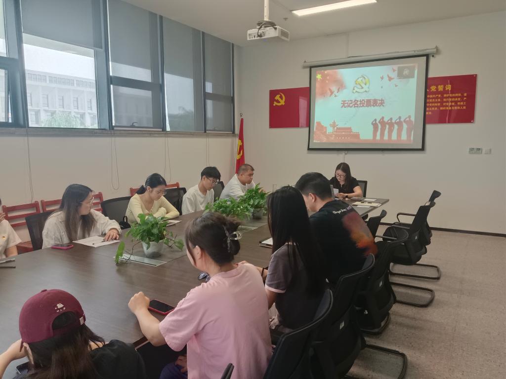 随后,与会正式党员进行无记名投票表决,一致认为这七名同志入党动机纯正,同意李古月等七名同志转正。最后,燕梦蝶作总结发言,对这七名转正的同志表示祝贺,并希望这几位党员同志都要牢记自己的党员身份,牢记入党誓词,始终以身作则,加强专业理论知识的学习和自身的修养,提升综合素质,增强为同学和社会服务的本领,做合格的共产党员,为党旗增辉,为学校添彩。