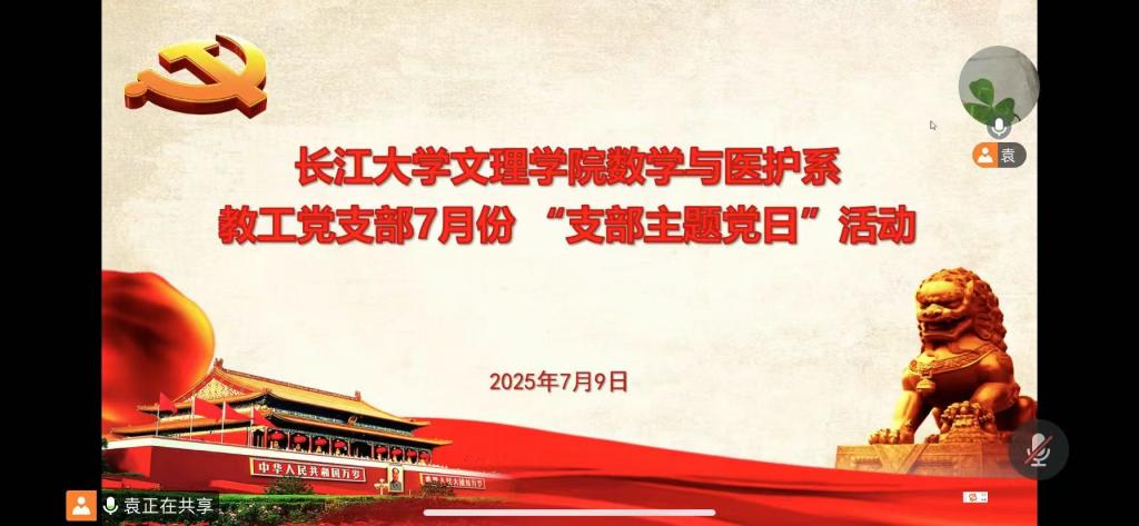 (本网讯)7月9日15:00,我系教工党支部在腾讯会议线上开展7月“支部主题党日”活动。会议由教工党支部书记袁萍主持,支部全体党员参加。