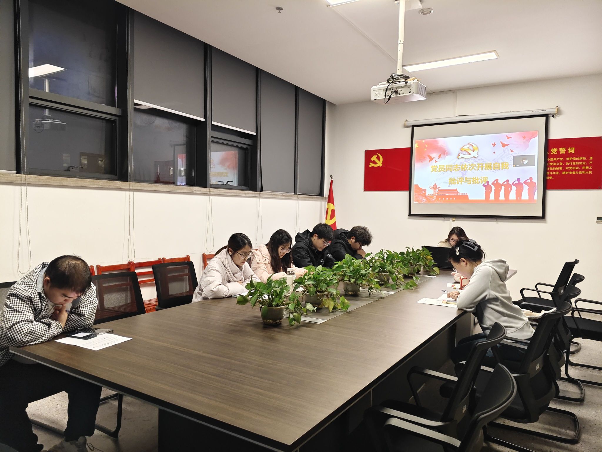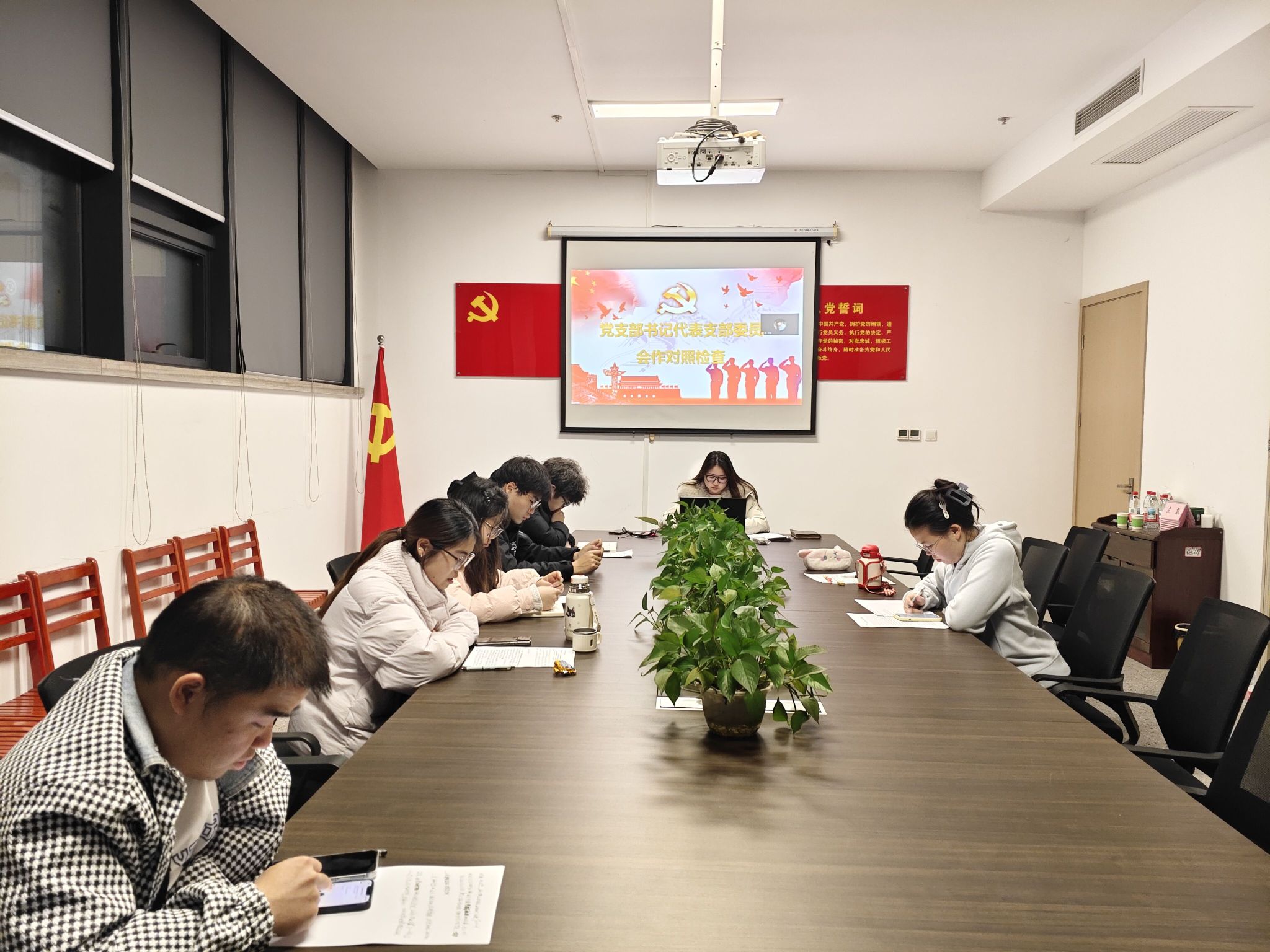 组织生活会阶段,燕梦蝶同志代表支部委员会作工作报告,全面回顾了过去一年党支部在学校党委领导下,扎实推进理论学习、主题活动、社会实践等各项工作取得的成效。她强调,全体党员要进一步凝心聚力,紧扣学校中心工作,持续为支部建设注入新动能。随后,全体党员逐一开展自我剖析,深入查摆自身在思想觉悟、理论学习、履职尽责等方面存在的差距与不足;与会党员本着实事求是、坦诚相见的原则,相互提出批评意见与改进建议。通过严肃认真的交流研讨,大家进一步明晰了整改方向,一致表示将以实际行动坚守初心、践行使命。民主评议党员环节,全体党员严格对照政治表现、学习工作、组织生活、遵纪守法、道德品行等评议标准,以无记名投票方式开展客观公正评价,充分彰显了党内民主监督的严肃性与规范性。最后,燕梦蝶同志作总结讲话。她指出,本次组织生活会是一次深刻的思想淬炼与政治历练。全体党员要以此次会议为契机,持续强化理论武装、锤炼党性修养、立足岗位担当作为,以更加饱满的精神状态,为推动学校高质量发展、贡献党的事业青春力量。