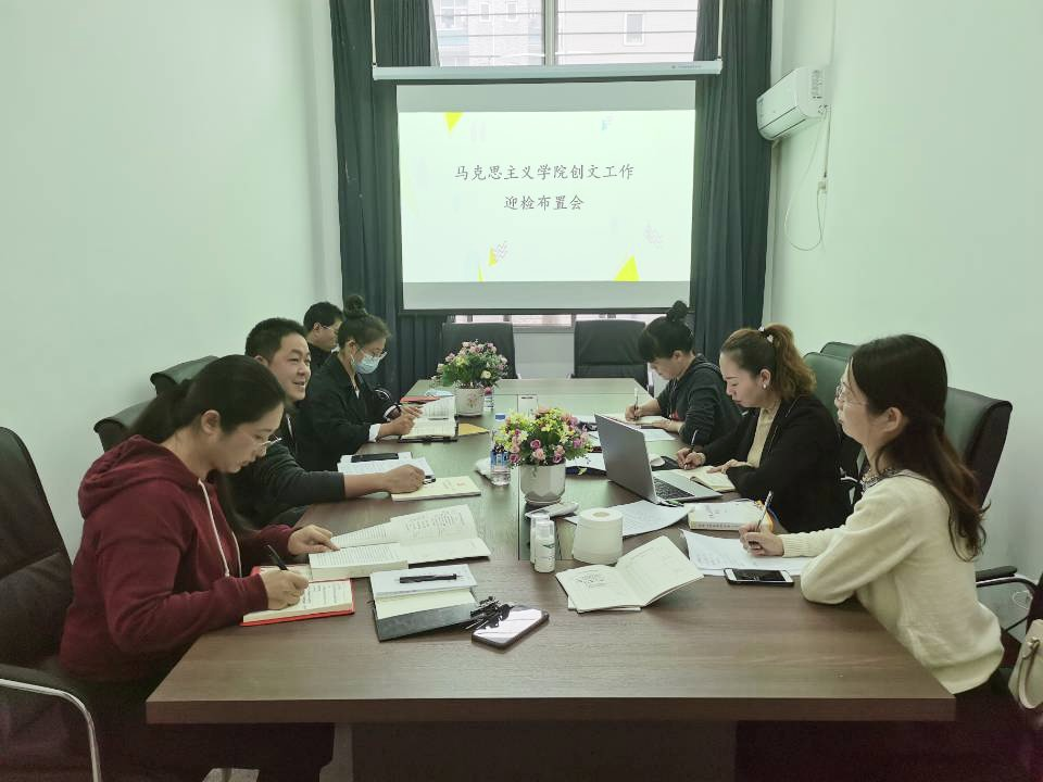 10月14日下午,马克思主义学院召开全体教职工大会,落实学校创文迎检工作布置会会议精神。会上,马克思主义学院院长谢俊丽要求马院全体教师严格按照学校创文工作的安排部署,落实好各项工作任务与要求,以饱满的精神状态、高度的责任感迎接创文迎检工作。