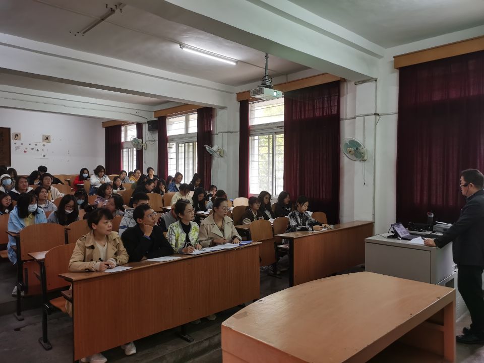 (通讯员:李晶晶)11月3日上午,马克思主义学院组织开展了一场公开课观摩活动。《思想道德与法治》课程任课老师郭世德副教授在2教204多媒体教室为外语类5214、5215共73名学生上了一堂主题为“做新时代的忠诚爱国者”的公开课。马克主义学院思想政治理论课教师参加了此次活动。